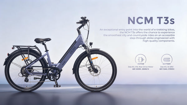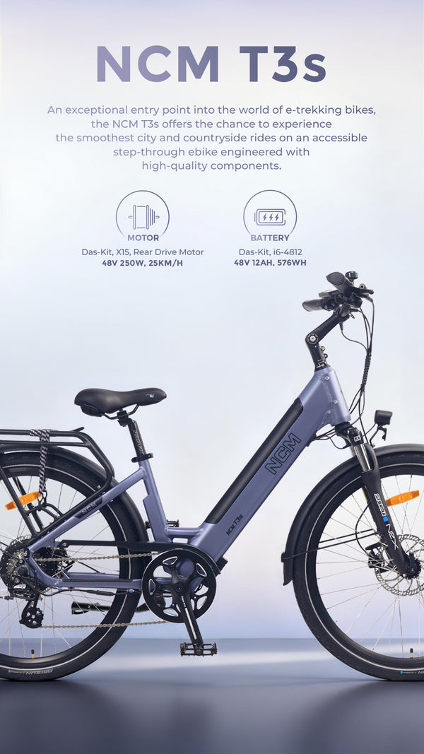 An exceptional entry point into the world of e-trekking bikes, the NCM T3s offers the chance to experience the smoothest city and countryside rides on an accessible step-through e-bike engineered with high-quality components.